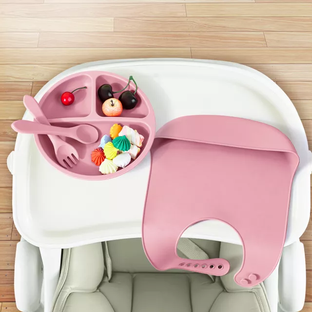 • Complete Set: Includes plate, spoon, fork, and adjustable bib for all mealtime needs.