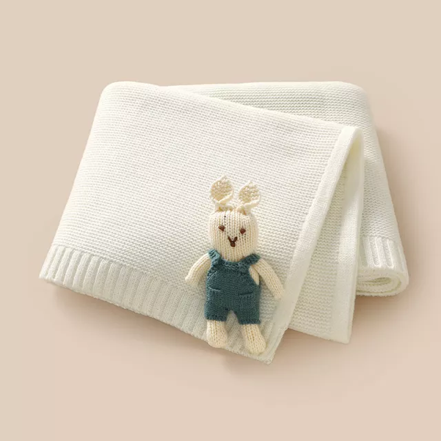 This baby blanket is made from 100% premium acrylic, ensuring a soft, breathable, and gentle touch on your baby’s delicate skin. The 3D bunny detail adds a playful and heartwarming charm, while the elegant plaid knit pattern gives it a timeless look that complements any nursery decor. Suitable for boys and girls alike, it’s designed to keep your baby cozy through all four seasons.