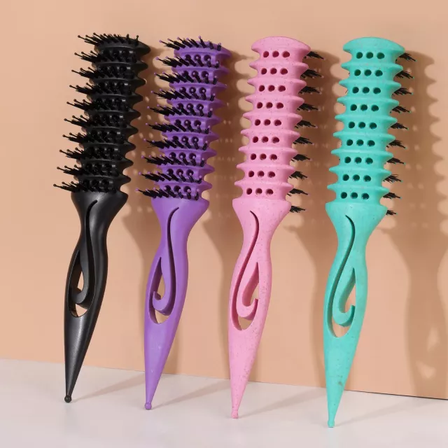 This styling brush features a lightweight plastic body and flexible hollow nylon bristles that bend with your hair instead of working against it. The smart hollow design helps evenly distribute tension while reducing snagging, making detangling faster and more comfortable. It’s ideal for wet or damp hair and works amazingly well with curl creams, gels, or leave-ins to shape curls with precision.
