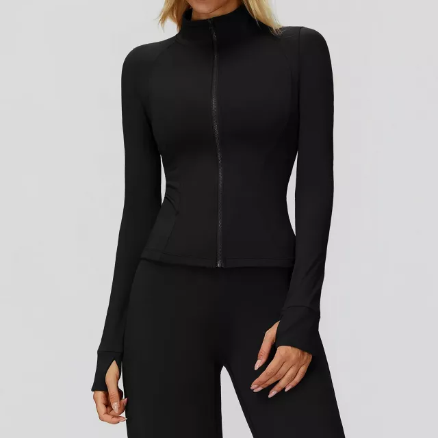 The long-sleeve zip-up design provides adjustable coverage, while the lightweight knit construction ensures unrestricted movement. Two convenient side pockets let you keep your keys, phone, or essentials close by. The sleek, form-fitting cut flatters every body shape, making it easy to transition from the gym to casual outings in style.